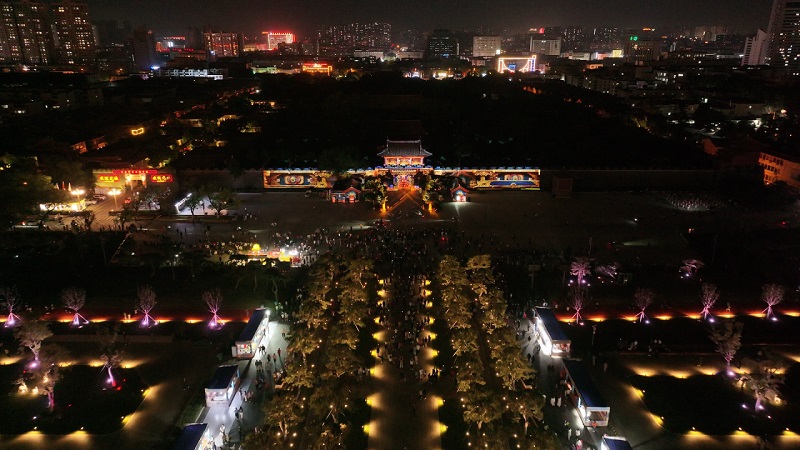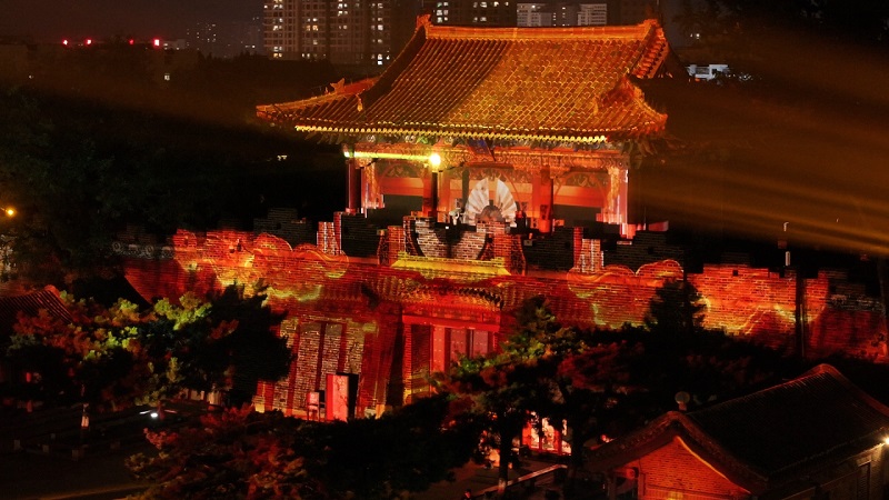 每日14時(shí)30分,活動(dòng)特邀來自肥城夢幻桃花源的專業(yè)演職團(tuán)隊(duì)帶來專場文藝演出。當(dāng)夜幕降臨,18時(shí)30至21時(shí)(每半小時(shí)一場),岱廟北城墻將變身“巨型光影幕布”,上演燈光秀表演。光影流轉(zhuǎn)間,千年歷史與現(xiàn)代科技碰撞融合,讓游客在光影變幻中直觀感受泰山文化的厚重底蘊(yùn)與魅力。